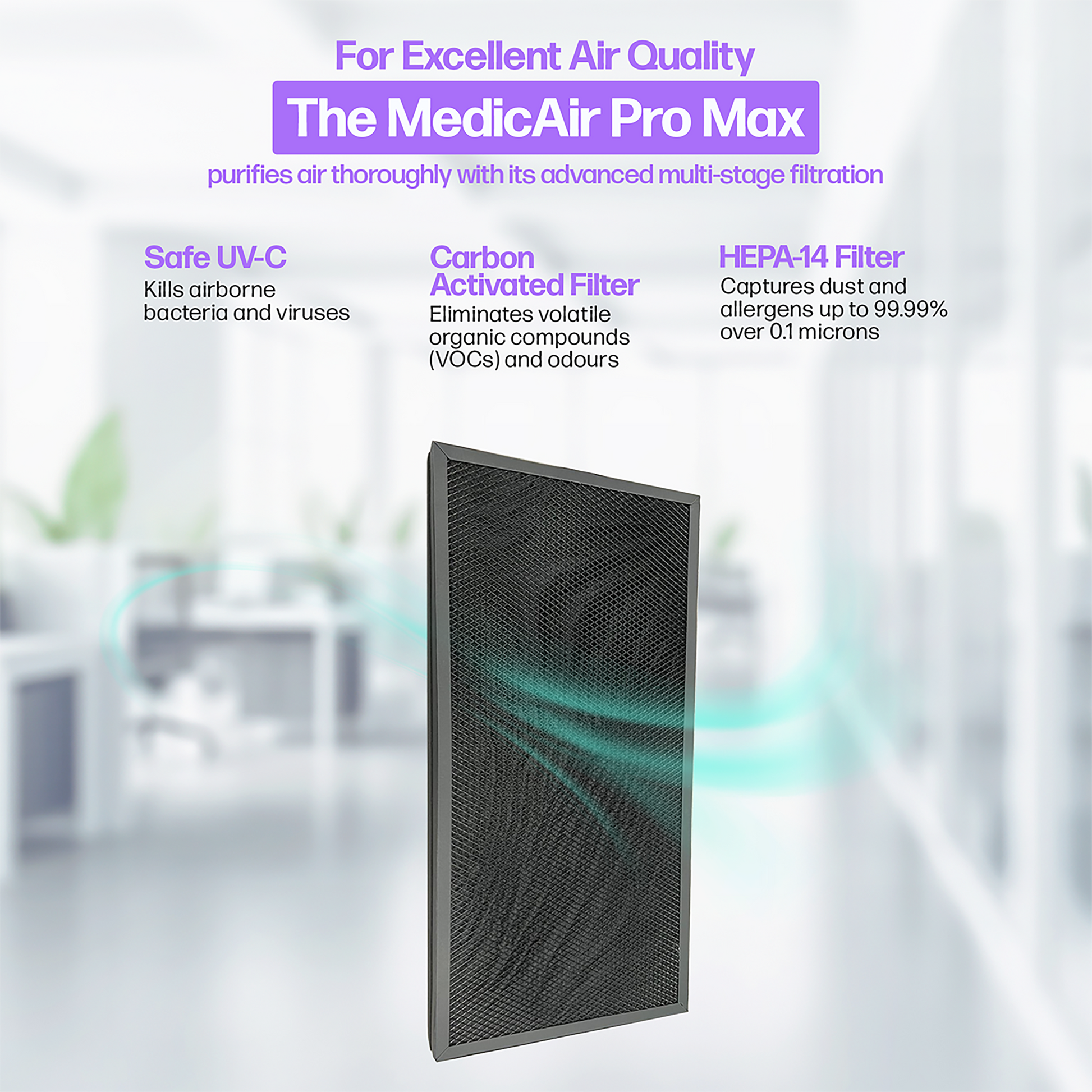 Whether you're safeguarding a busy household or managing air quality in a healthcare or educational setting, the MedicAir Pro Max delivers unmatched performance, reliability, and peace of mind.